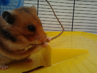 Bibi was trouwens ook onze laatste dwerghamster. Daarna hebben we alleen nog maar goudhamsters (gehad). Dit is Dobby (ja net als in harry potter). Een super schattige en luie goudhamster. Het was altijd geweldig als hij bij je op schoot in slaap viel! We zijn er ook achter gekomen dat goudhamsters meer hamsteren (ook wolletjes en ander nestmateriaal). |